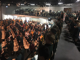 Eliannah was asked to go out the front and stand next to a year 12 student. She looked so little compared to the year 12 student who had also started in prep.